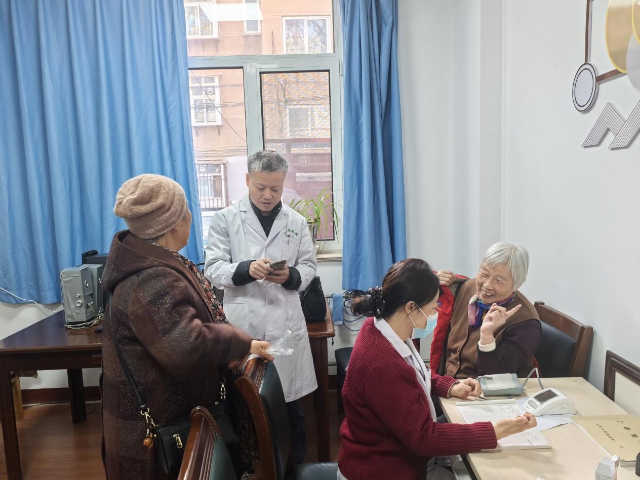 校医院医护人员在现场为老同志们提供慢病问诊、用药方案调整建议、血压与血糖检测等便民医疗服务,用专业诊疗为老同志们的健康保驾护航。