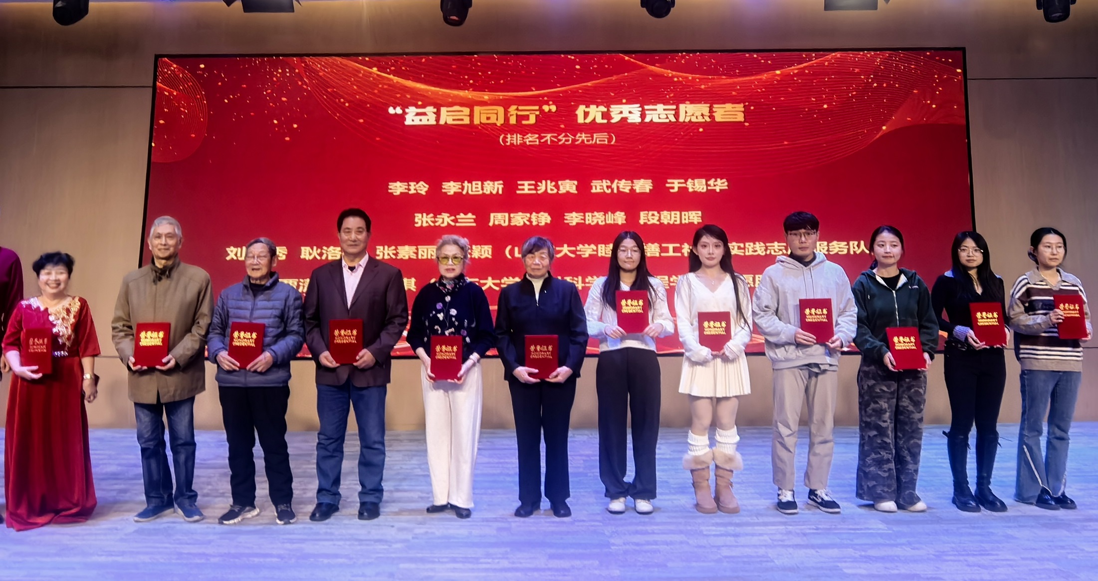 演出间歇,活动进入了庄严而温馨的表彰环节。在热烈的掌声中,山东大学离退休工作处被表彰为“优秀双报到单位”,以山东大学离退休党委第三总支书记李玲为代表的我校7名“智行先锋团”的老同志被表彰为“社区优秀志愿者”。他们退休不褪色、离岗不离党,始终铭记初心,积极参与社区治理,长期不计报酬、不辞辛劳,穿梭于楼宇之间,服务在邻里身边,是社区互助的温暖符号和基层服务的坚实力量。