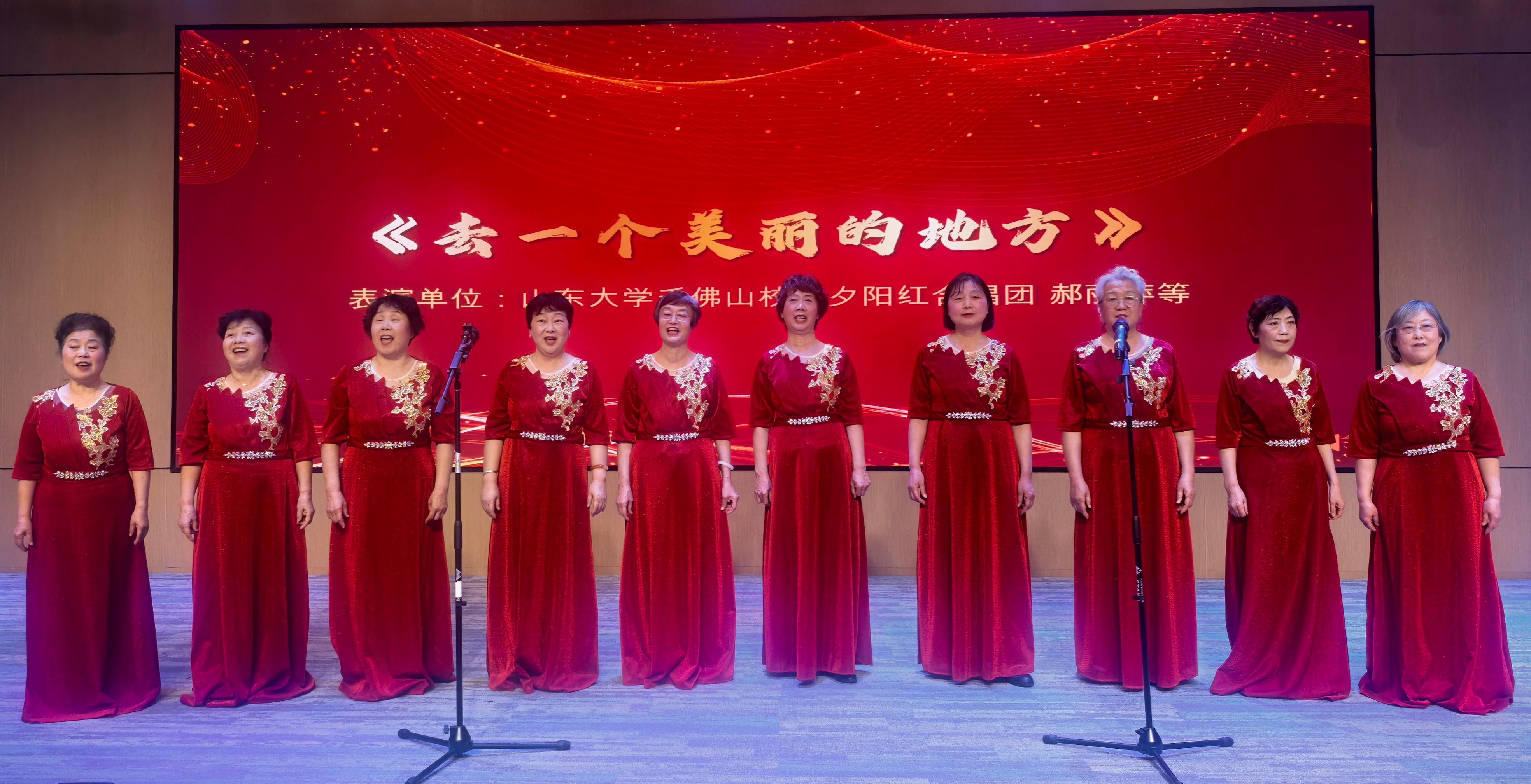 文艺演出环节精彩纷呈,充分展示了山东大学老年大学丰硕的教学成果与学员们昂扬的时代风采。男子操舞队带来的广场舞《回到山沟沟》,舞步铿锵有力,阵容整齐划一,丝毫不输青春劲旅,展现了老年群体健康乐观、活力迸发的精神状态。合唱班倾情演绎的《去一个美丽的地方》,歌声婉转悠扬,情感真挚饱满,表达了对幸福生活、对祖国山河的无限热爱与向往。