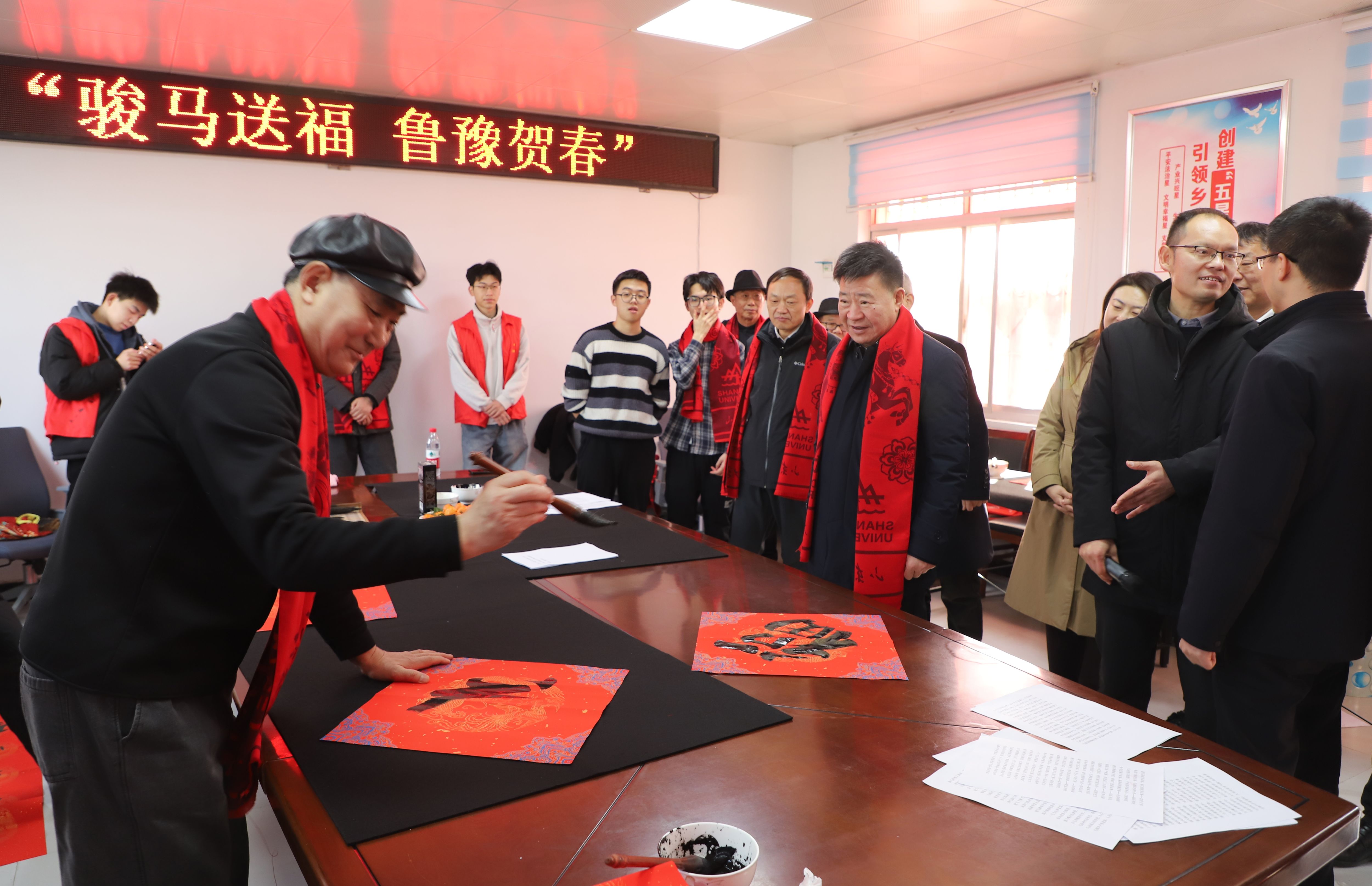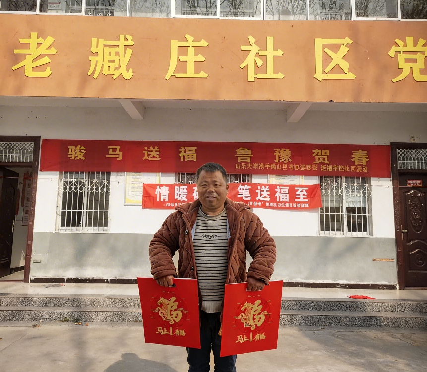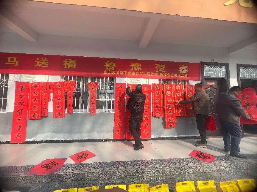 新春将至,年味渐浓。2月5日,山东大学离退休工作处、学生书画协会携手确山县书法协会,走进确山县三里河街道老臧庄社区,举办“骏马送福 鲁豫贺春——送春联福字进社区”文化惠民活动。此次活动以传统年俗为纽带,不仅为当地居民送去了新春祝福,更成为校地深化文化合作、赋能乡村振兴的生动实践。