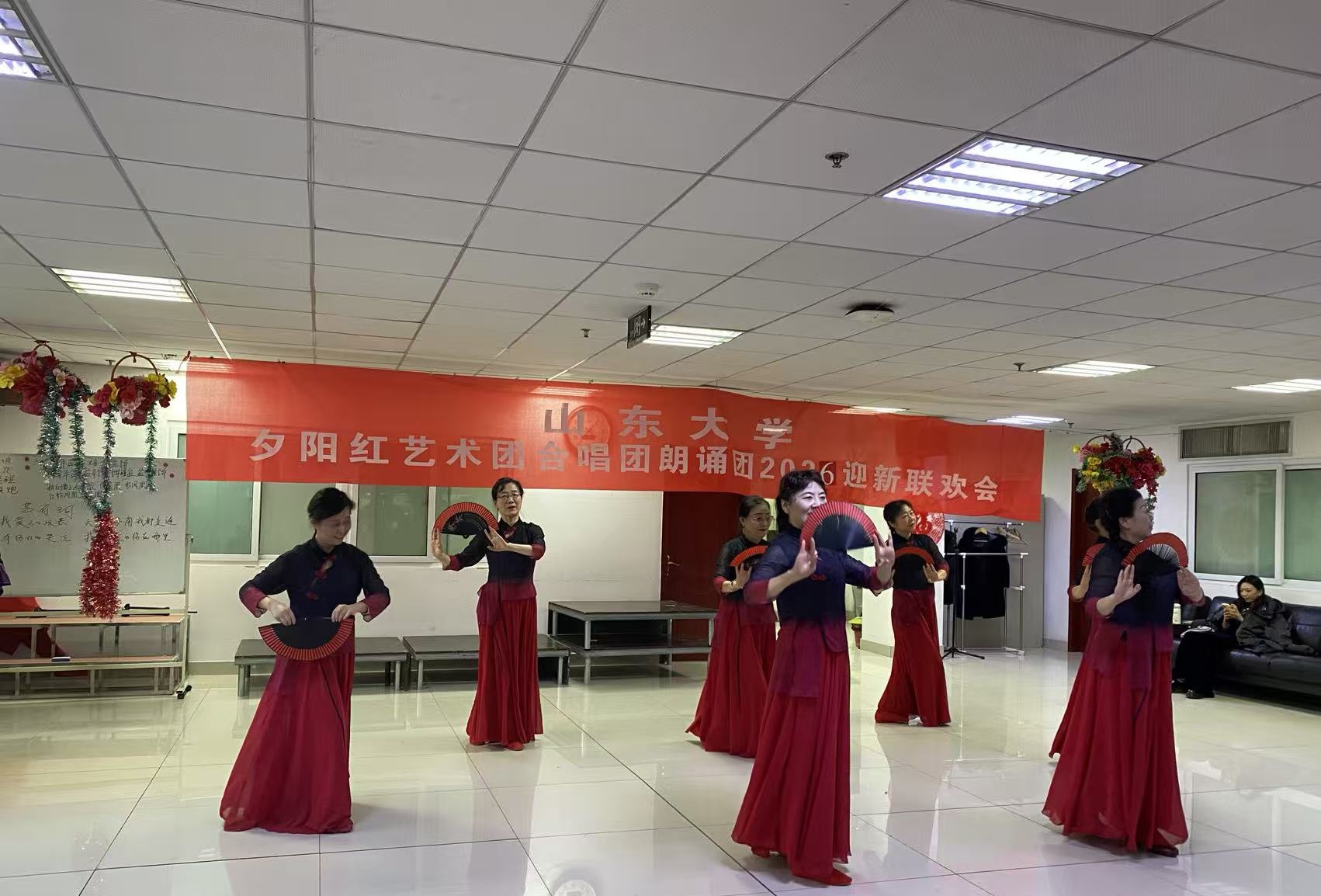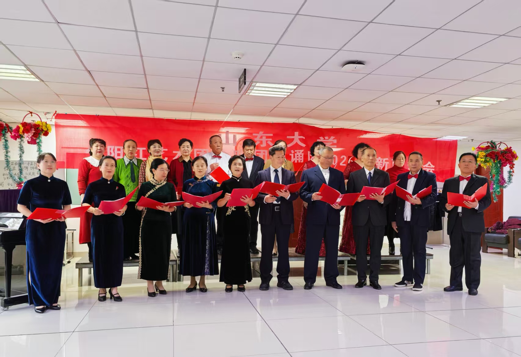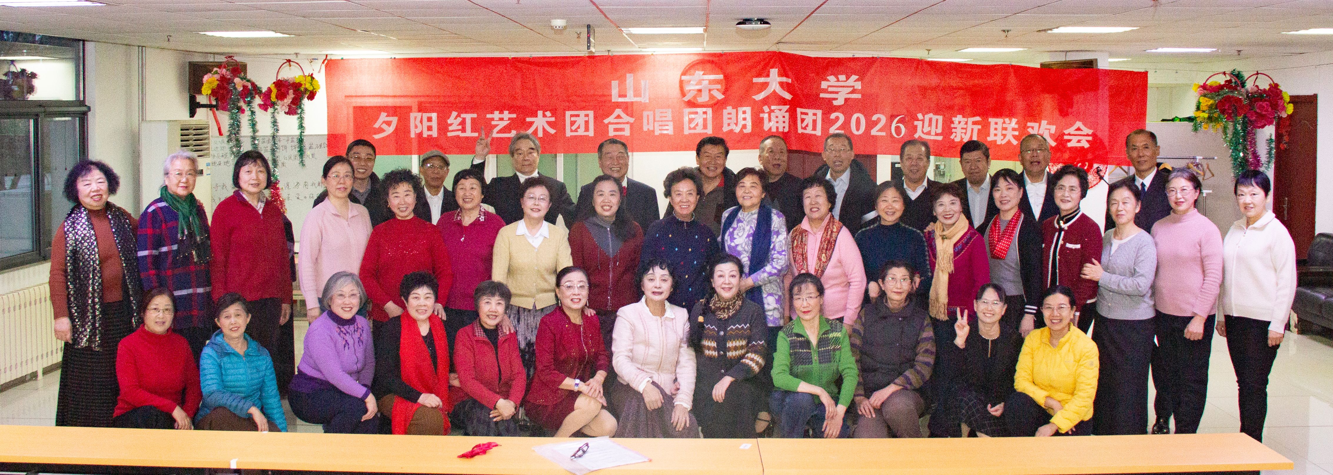 12月31日,山东大学夕阳红艺术团合唱团、朗诵团2026迎新联欢会在中心校区夕阳红活动中心举行。山东大学原党委副书记、山东大学夕阳红艺术团团长方宏建,离退休处工作人员及部分退休教职工参加活动。