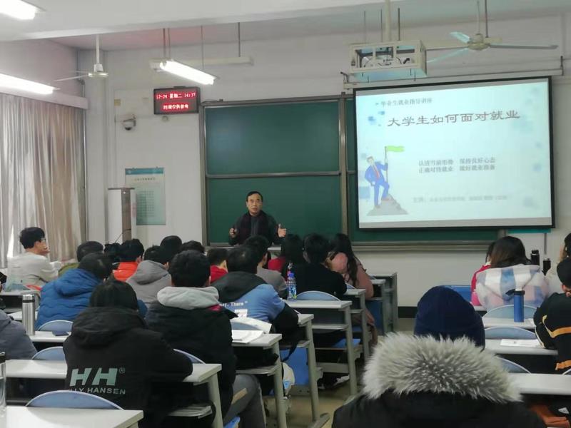 2019年12月24日下午,离退休党委第三党总支第七党支部书记赵世民同志在兴隆山校区,为第七党支部所联系的土建学院土建17.2班学生作了题为“大学生如何面对就业”的讲座。