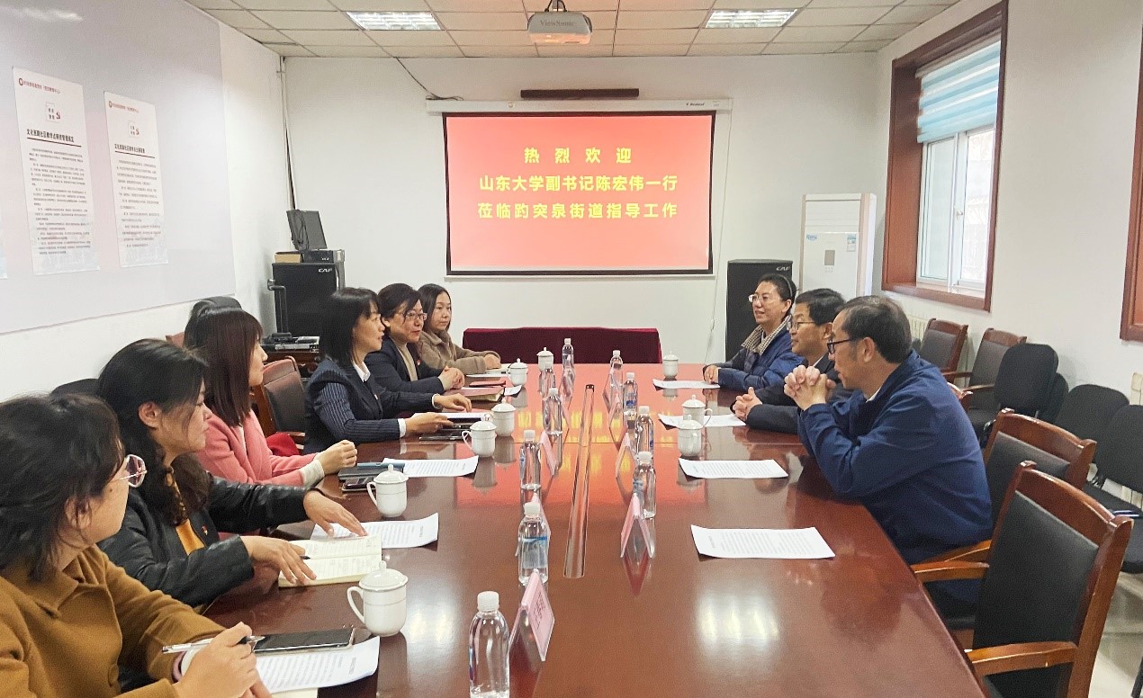 12月6日下午,山东大学党委副书记陈宏伟到趵突泉街道社区党群服务中心调研,围绕强化离退休干部党建引领及高校离退休干部党组织与社区党组织融合共建等方面,与趵突泉街道领导进行座谈交流。趵突泉街道党工委副书记、办事处主任商黎主持座谈,山东大学离退休党委书记郭举修、副书记刘冰,文西社区居委会主任李建华及趵突泉街道办相关负责同志等参加座谈会。