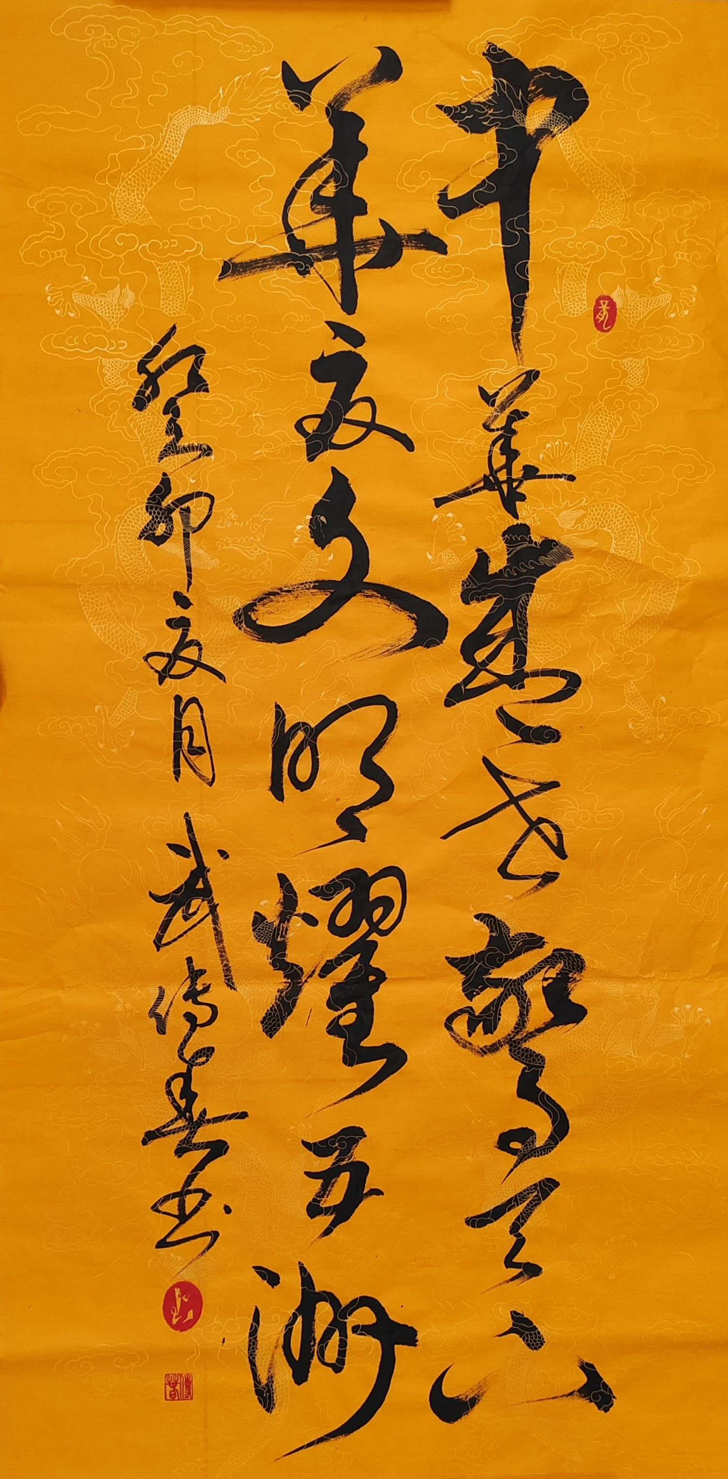 注释:“中华盛世惊天下,华夏文明耀五洲”。