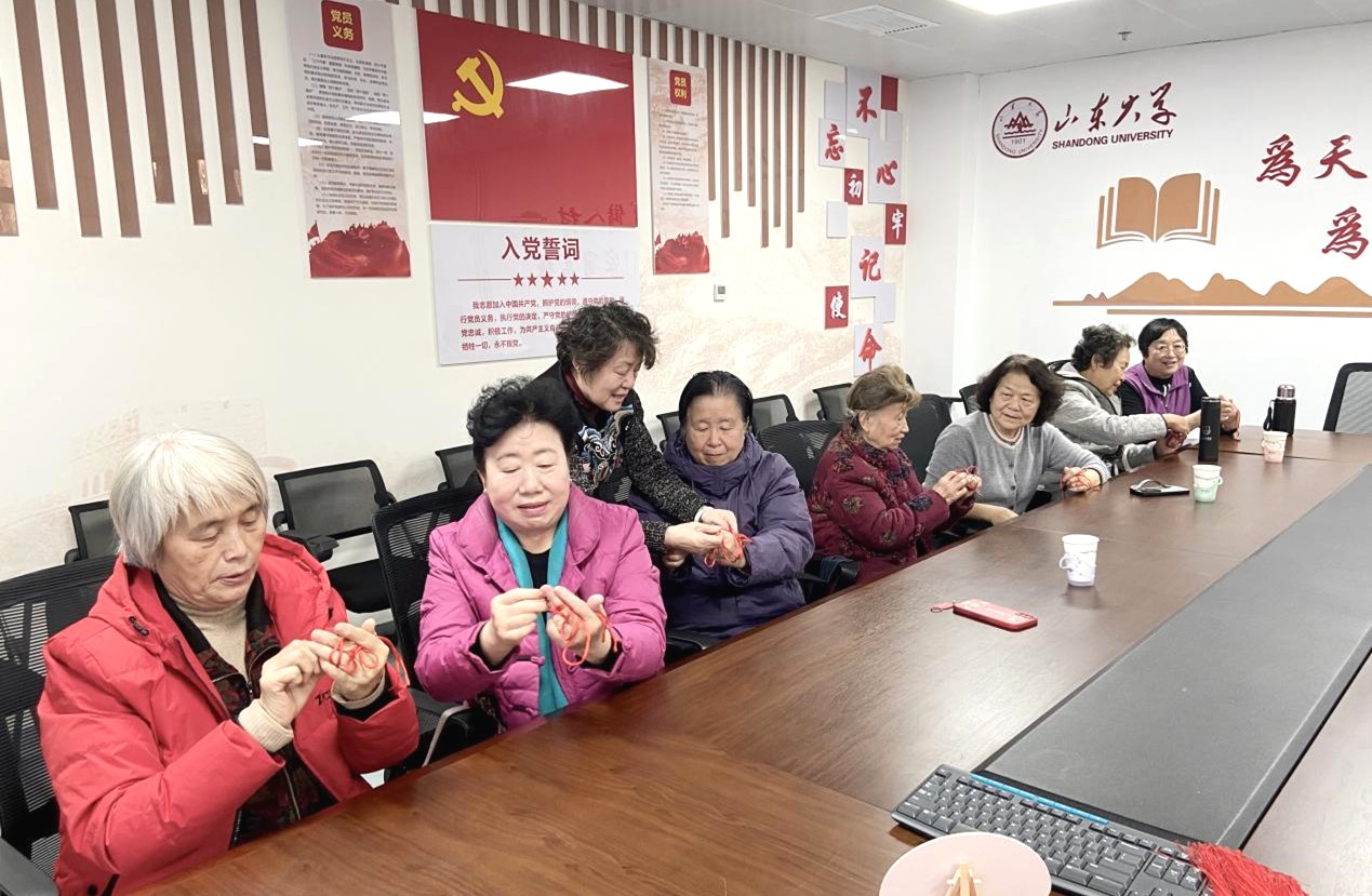 12月17日,山东大学老年大学联合市妇联及趵突泉街道文西社区举办“中国结”非遗体验课活动。此次活动是老年大学手作课堂系列课程之一,旨在通过沉浸式手工实践,丰富离退休教职工精神文化生活,推动非物质文化遗产在老年群体中的传承与普及。此次校地联动模式有效整合了优质文化资源,为老年教育注入了专业活力。